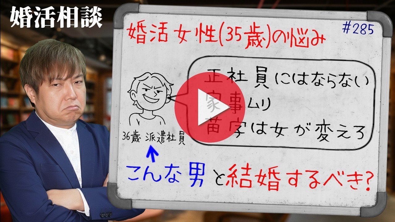 「35歳正社員・年収700万の女性です。36歳・派遣社員(年収550万)の男性とお見合い後、結婚を迷っています。彼は「正社員になるか未定」「家事のうち料理は無理」「苗字は女性が変えるべき」と主張。一方で私が仕事を続けるのは尊重するとのことですが、家事も苗字も譲らない姿勢に不満が残ります。自分が稼ぐ覚悟はありますが、その分の協力が感じられずモヤモヤしています。年齢的に逃したくない気持ちと、独身でも生きていける現実との間で葛藤しています。」